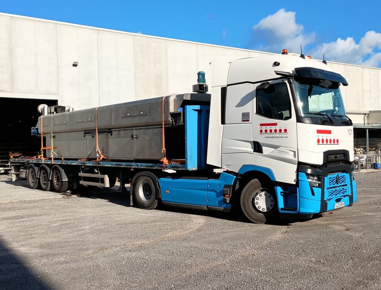 Transporte con plataformas lisas versátil y fiable, perfecto para cargas voluminosas o de geometría especial, garantizando estabilidad, maniobrabilidad y máxima seguridad durante el trayecto.